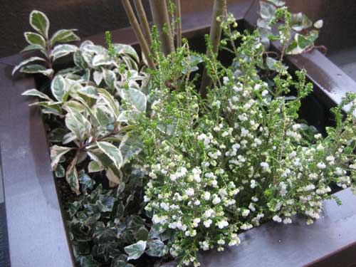 物はエリカやマーガレット、斑入ヤブコウジ、アイビ