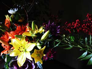 エントランス前はナンテンの枝ものをゴージャスなブーケ風に。