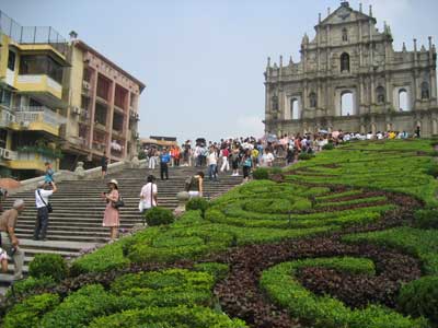 にも驚きです。写真は世界遺産の聖ポール天主堂、セナド広場のモザイク石畳、裏路地も素敵でしょ♪