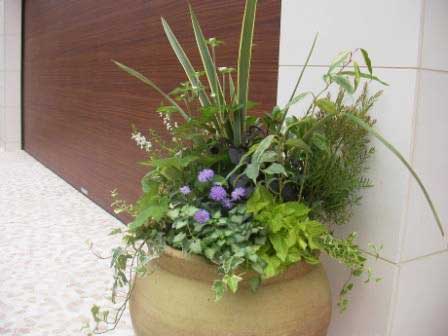 ひと鉢の存在で玄関前の雰囲気がずいぶん変わり、お客様をお出迎え