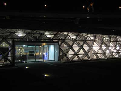 懇親会の後は外が真っ暗で、イノベーションギャラリーの建物があまりにカッコよく見えて思わす