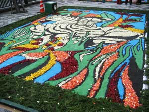 りが、ちょうどその川沿いで花びらで絵を描いたすばらしいアート作品
