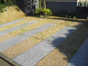 アプローチをグリーンで包む様に配植しています。アプローチの