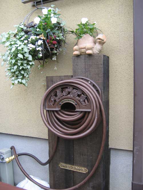 たアイデアがいいアクセントになるのですね。道路から見えるデザインホースリールがお庭のア