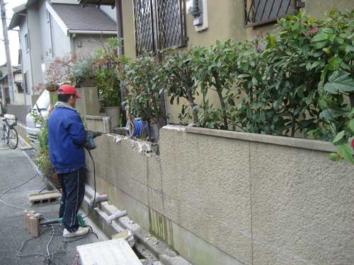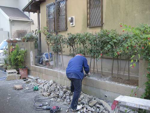 お庭のリフォーム工事がはじまりました。まずは既存のブロック塀を撤去したり、コンクリート