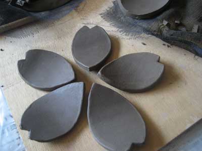 自宅で信楽の土を使って桜の花びらを型取った箸置きをつくりました。