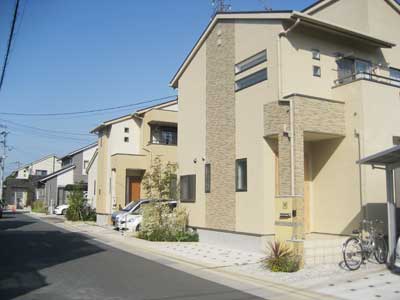 明るく映えます。外構工事も残すところあと1棟、新しい家族が集まった街は活気があっていいです。