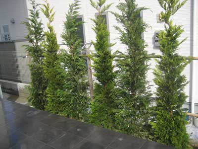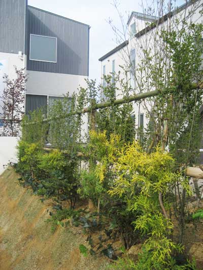 門周りの緑のボリュームアップ、テラス脇植栽の目隠し機能の改善、生垣