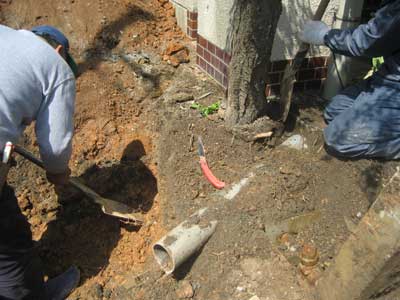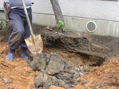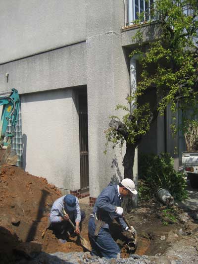 高木4本とも見事にガス管や電気の配管、上下水道管に絡んでいて、慎重に