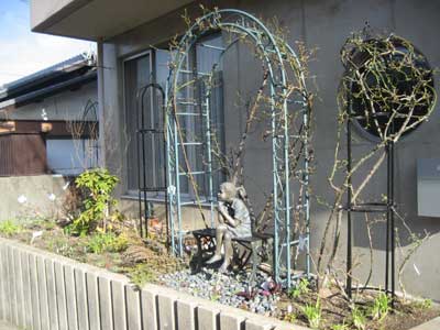 フェンスを設置しました。フロントガーデンに女の子のブロンズ
