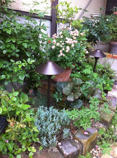 「こんなお天気で光は弱いけれどソーラー電池の照明がほんのり灯ると嬉しいわ(^^)」っておっしゃっていました。