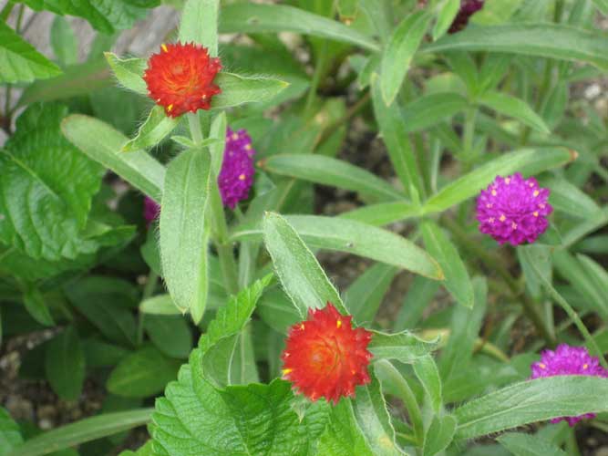 「千日紅センニチコウ」が満開です。カサカサとした花は乾燥しても長期間紅の色があせな