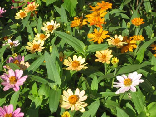 「百日草ジニア。プロフュージョン」も花盛りです。メキシコ原産のキク科一年草で、6〜